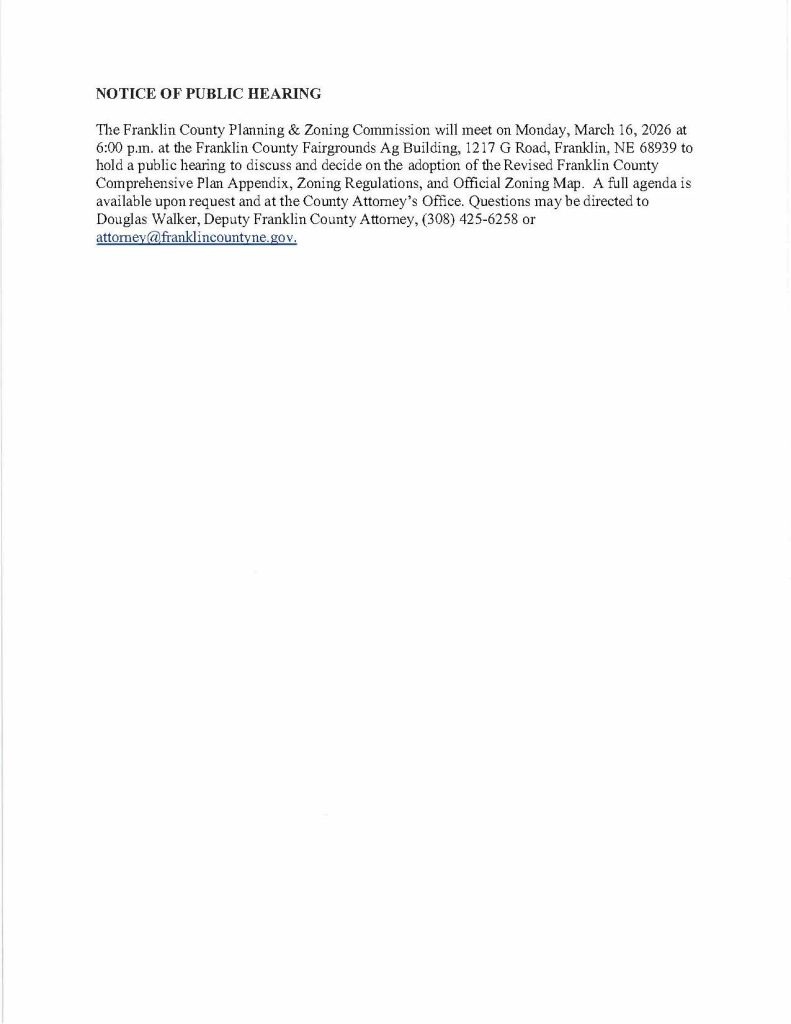 NOTICE OF PUBLIC HEARING PLANNING & ZONING